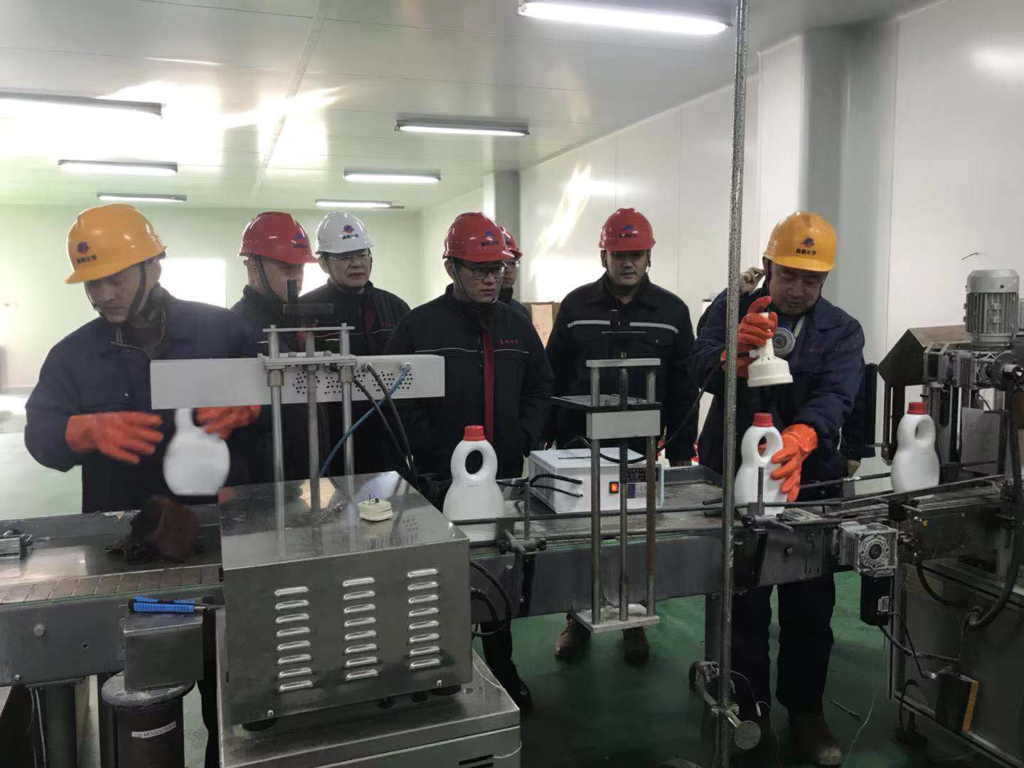 肖輝總經理在84消毒液灌裝現場